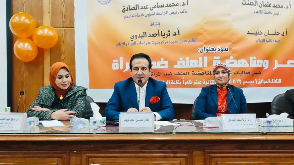 نظم مركز بحوث ودراسات المرأة بكلية الإعلام جامعة القاهرة، أمس، ندوة بعنوان “مصر.. ومناهضة العنف ضد المرأة”، تحت رعاية د. محمد عثمان الخشت رئيس جامعة القاهرة، ود. حنان جنيد عميدة كلية الإعلام، وبدعم من د. محمد سامي عبد الصادق نائب رئيس الجامعة لشئون خدمة المجتمع وتنمية البيئة، وبإشراف د. ثريا أحمد البدوي مدير مركز بحوث ودراسات المرأة.