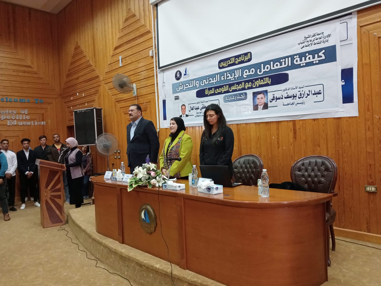 نظمت الإدارة العامة لرعاية الطلاب بجامعة كفر الشيخ برنامجًا تدريبيًا في كلية التربية النوعية بكيفية التعامل مع الإيذاء البدني والتحرش.