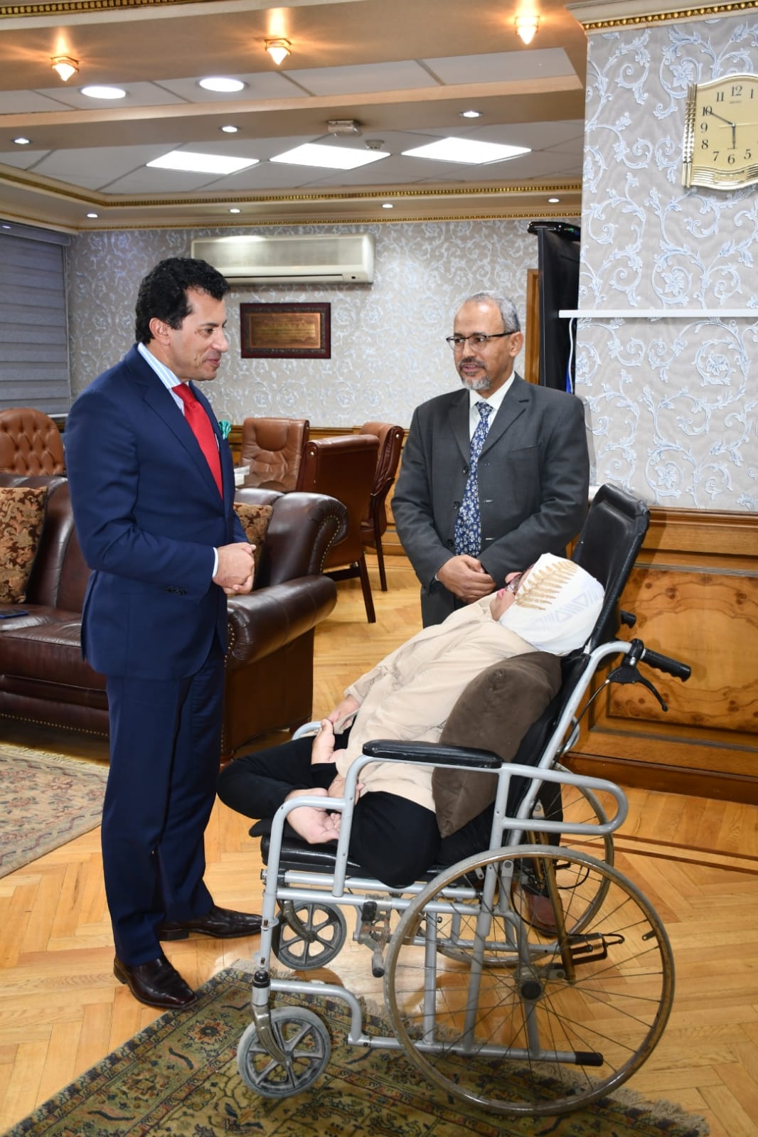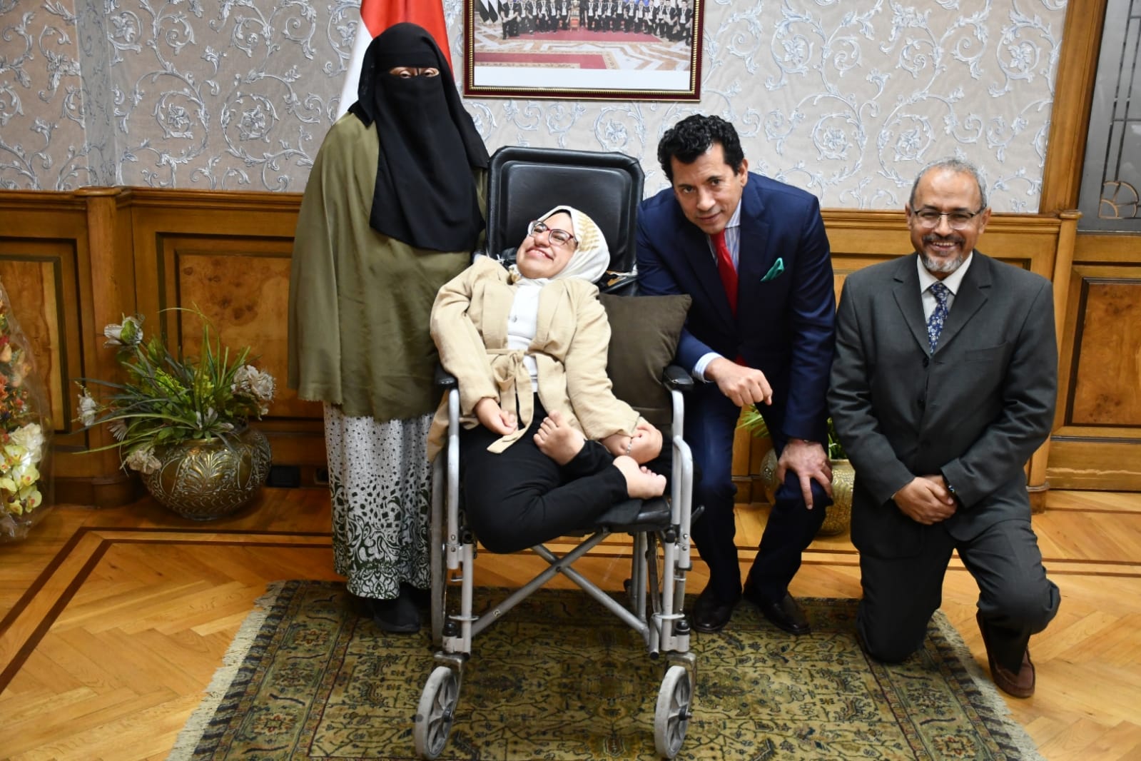 استقبل الدكتور أشرف صبحى، وزير الشباب والرياضة، الطالبة صفاء طه بكلية الإعلام جامعة القاهرة من ذوى القدرات الخاصة والهمم، والتى استطاعت الفوز بالمركز الثاني في بطولة أفريقيا لرياضة البوتشا، وكذا حصولها علي المركز الأول فى مسابقة الفنون التشكيلية على مستوى الجامعة، وتحقيقها العديد من الميداليات والانجازات.