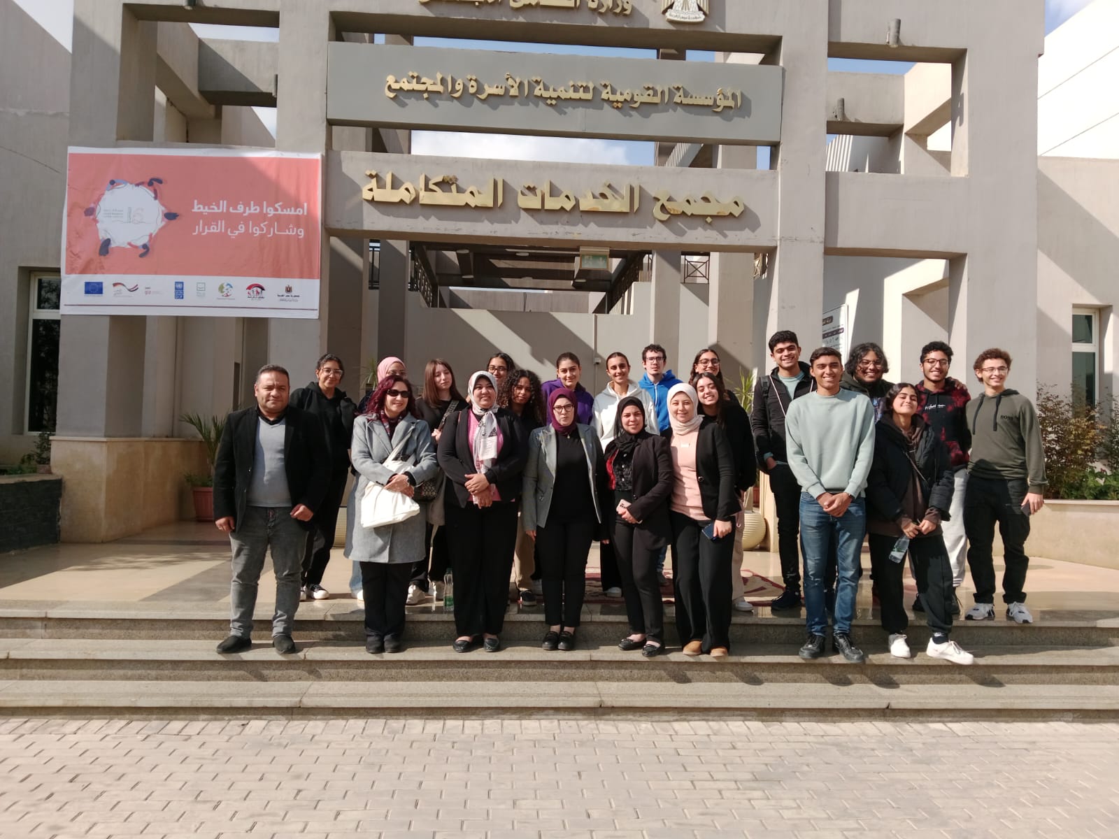 زار وفد طلابي من مركز الوليد بن طلال للدراسات والأبحاث الأمريكي بكلية الشئون العالمية والسياسات العامة بالجامعة الأمريكية بالقاهرة برفقة الدكتورة ياسمين الغزالي مدرس بالجامعة الأمريكية، مركز إستضافة وتوجيه المرأة التابع لوزارة التضامن الإجتماعي بمجمع الخدمات المتكاملة بالأسمرات.