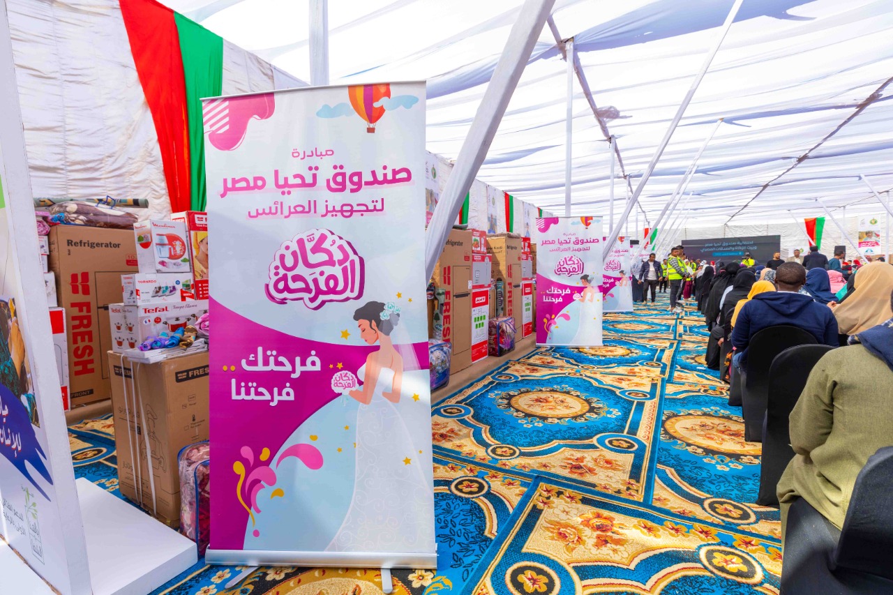 وأوضح عبد الفتاح أن الاحتفالية تضمنت أيضا تسليم 121 فتاة مستلزمات الزواج ضمن مبادرة دكان الفرحة، وحصلت كل فتاة على ثلاجة، وغسالة، وسخان، ومكواه، ومروحة، وبوتاجاز، وأدوات مطبخ، ومفروشات وأغطية، ومحضر طعام، وخلاط.