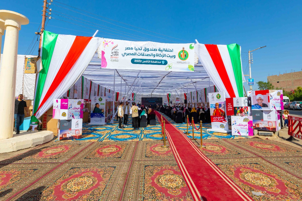 نظم صندوق تحيا مصر، احتفالية كبرى بمحافظة الأقصر بالتعاون مع مؤسسة بيت الزكاة والصدقات المصري تضمنت أنشطة الحماية الاجتماعية لصالح الأسر الأولى بالرعاية بالمحافظة في إطار تنفيذ برتوكول التعاون المشترك بين المؤسستين.