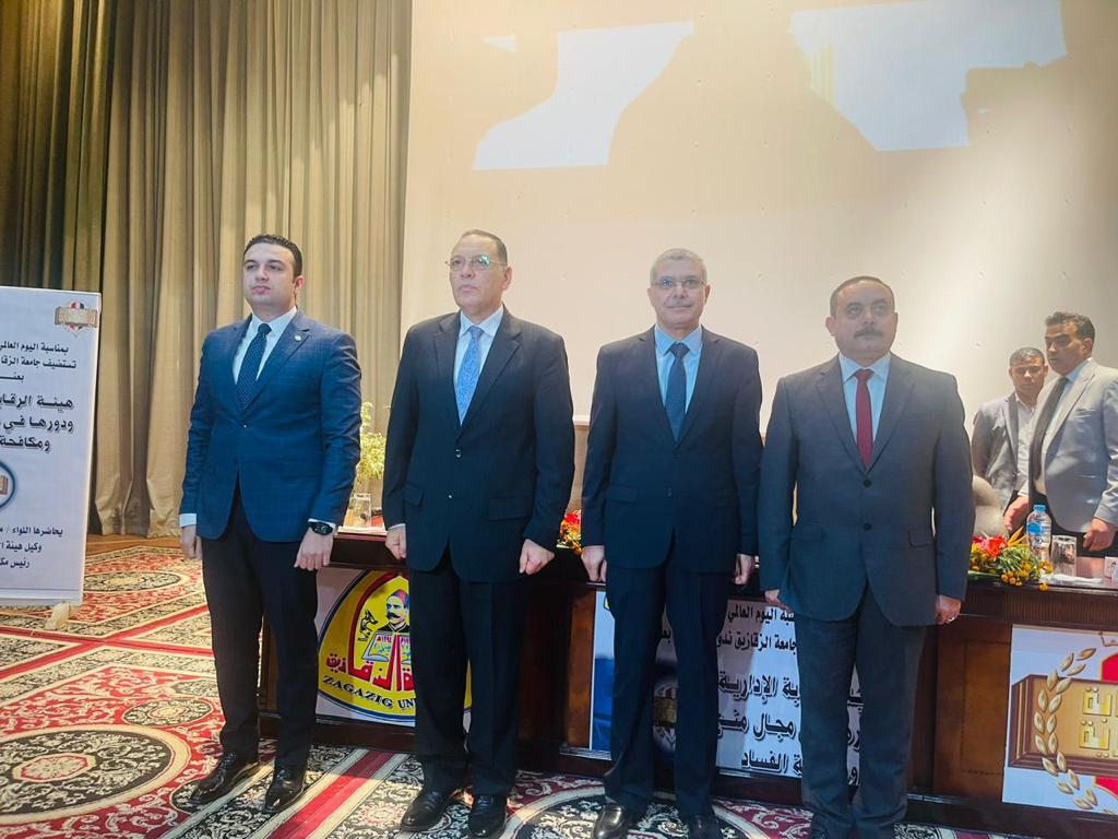 تحت رعاية د.خالد الدرندلي رئيس الجامعة ود. ممدوح غراب محافظ الشرقية واللواء محمد عبد الحفيظ أبو شقة وكيل هيئة الرقابة الإدارية ورئيس مكتب هيئة الرقابة الإدارية بالشرقية، استضافت جامعة الزقازيق الندوة التوعوية التي تقيمها هيئة الرقابة الإدارية بمناسبة اليوم العالمي لمكافحة الفساد بعنوان: “هيئة الرقابة الإدارية ودورها في مجال منع ومكافحة الفساد”.