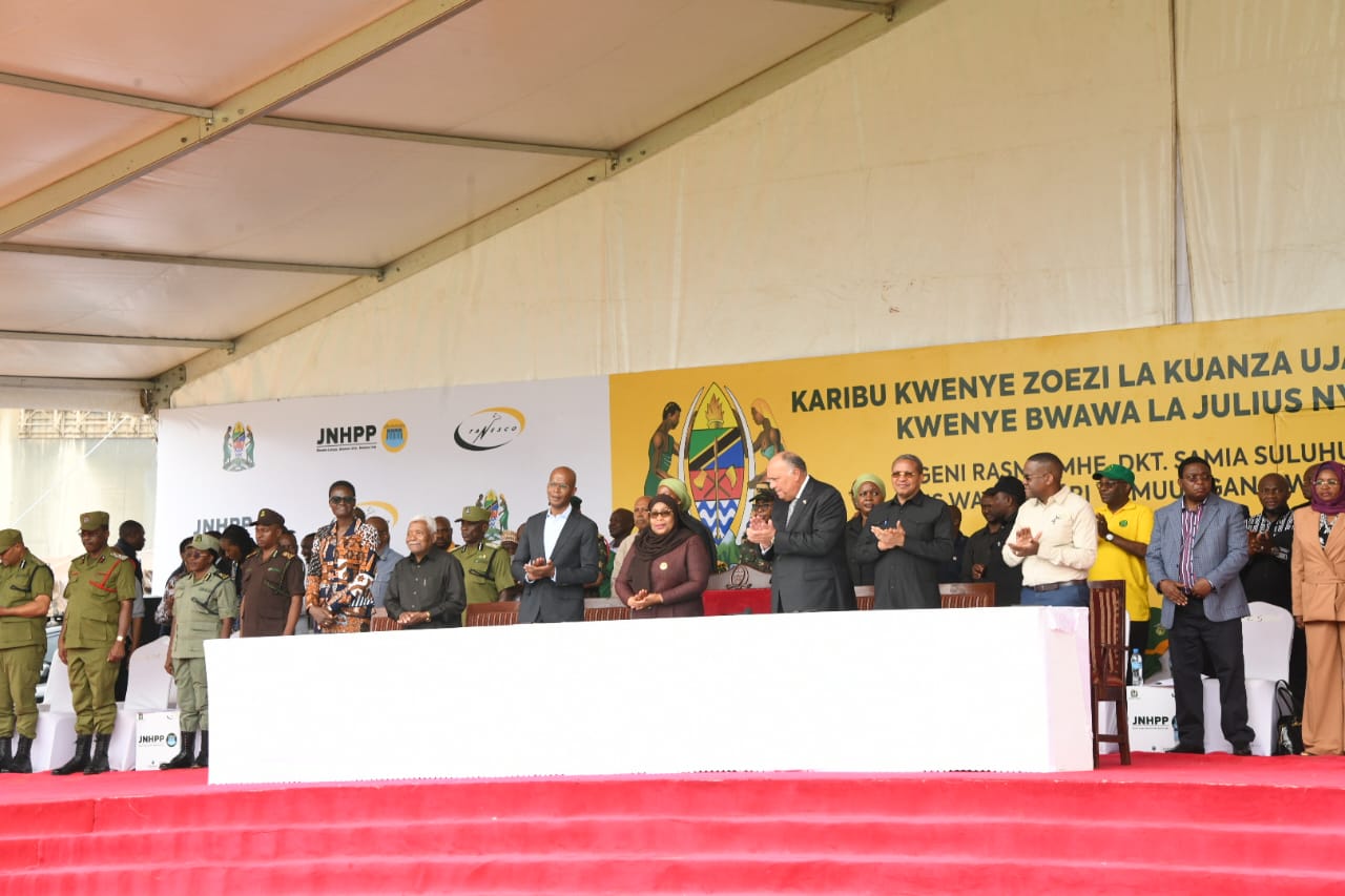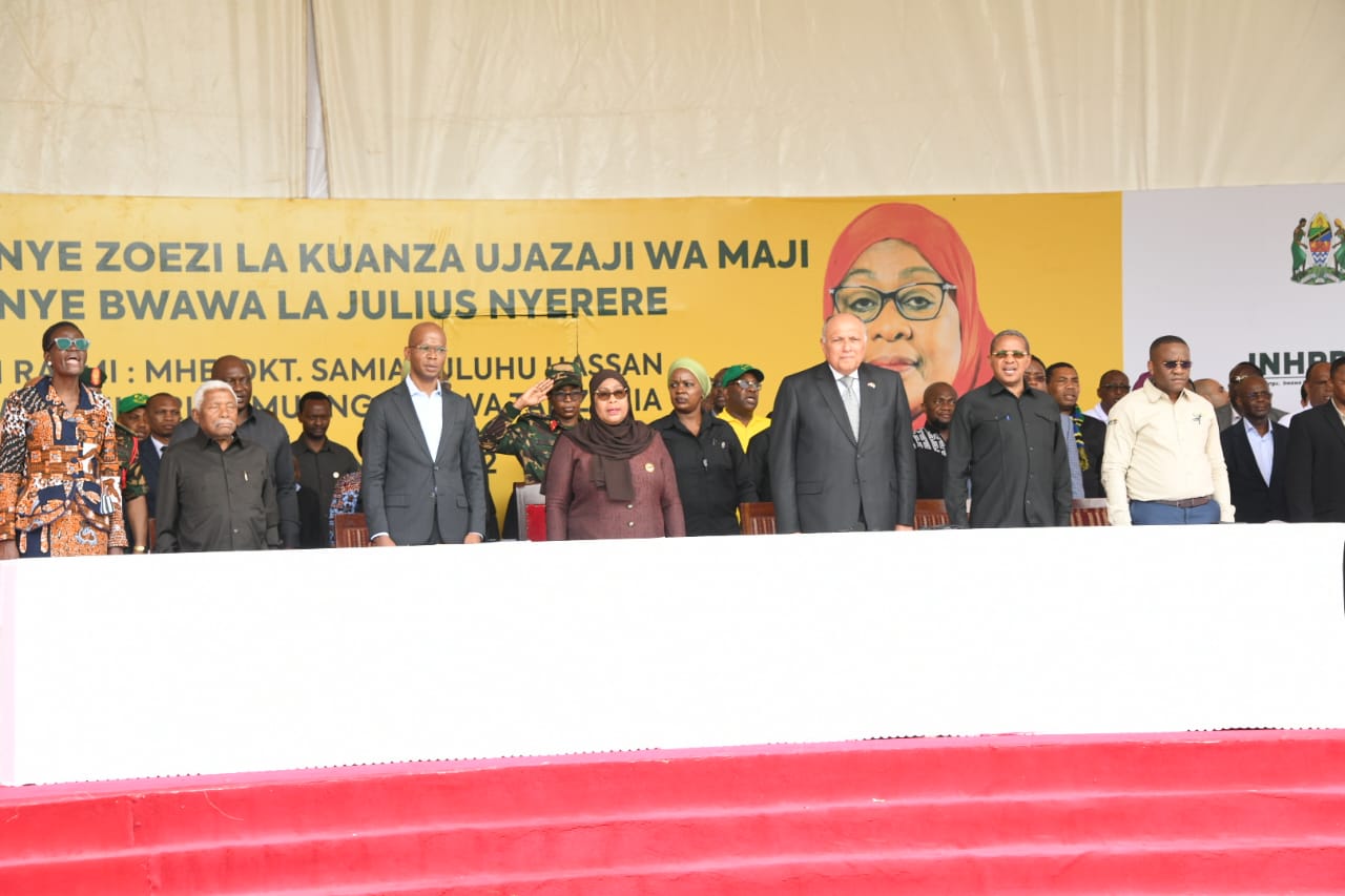 شارك سامح شكرى، وزير الخارجية، والدكتور عاصم الجزار، وزير الإسكان والمرافق والمجتمعات العمرانية، صباح اليوم الخميس، فى الاحتفالية التى تنظمها دولة تنزانيا، بتشريف سامية حسن، رئيسة جمهورية تنزانيا المتحدة، بمناسبة بدء الملء الأول لخزان مياه مشروع سد ومحطة “جوليوس نيريرى” الكهرومائية، على نهر روفيجى، بتنزانيا، وذلك على رأس وفد مصرى رفيع المستوى، يضم عدداً من المسئولين الحكوميين، ومسئولى التحالف المصرى لشركتى “المقاولون العرب” و”السويدى إليكتريك” المُنفذ للمشروع، وذلك بحضور مسئولي الشركة التنزانية لتوريد الكهرباء (تانيسكو TANESCO) – المالكة للمشروع، وكبار مسئولى الحكومة التنزانية، يتقدمهم جانيوري ماكامبا، وزير الطاقة التنزاني، والدكتورة ستيرجومينا لورانس تاكس، وزيرة الشئون الخارجية والتعاون مع شرق أفريقيا، ولفيف من المسئولين في الحكومة التنزانية، والإدارات المحلية، وممثلين لطوائف وجموع الشعب التنزاني.