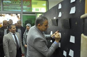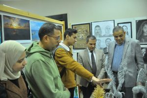 موضحاً أن المعرض الفني للطلاب يأتي في إطار استعداد الجامعة لتنمية كفاءة ومهارة الطلاب لإظهار مواهبهم وقدراتهم الفنية وتأهيلهم للمشاركة في مسابقة “إبداع 11” التي تنظمها وزارة الشباب والرياضة سنويا على مستوى الجامعات المصرية.