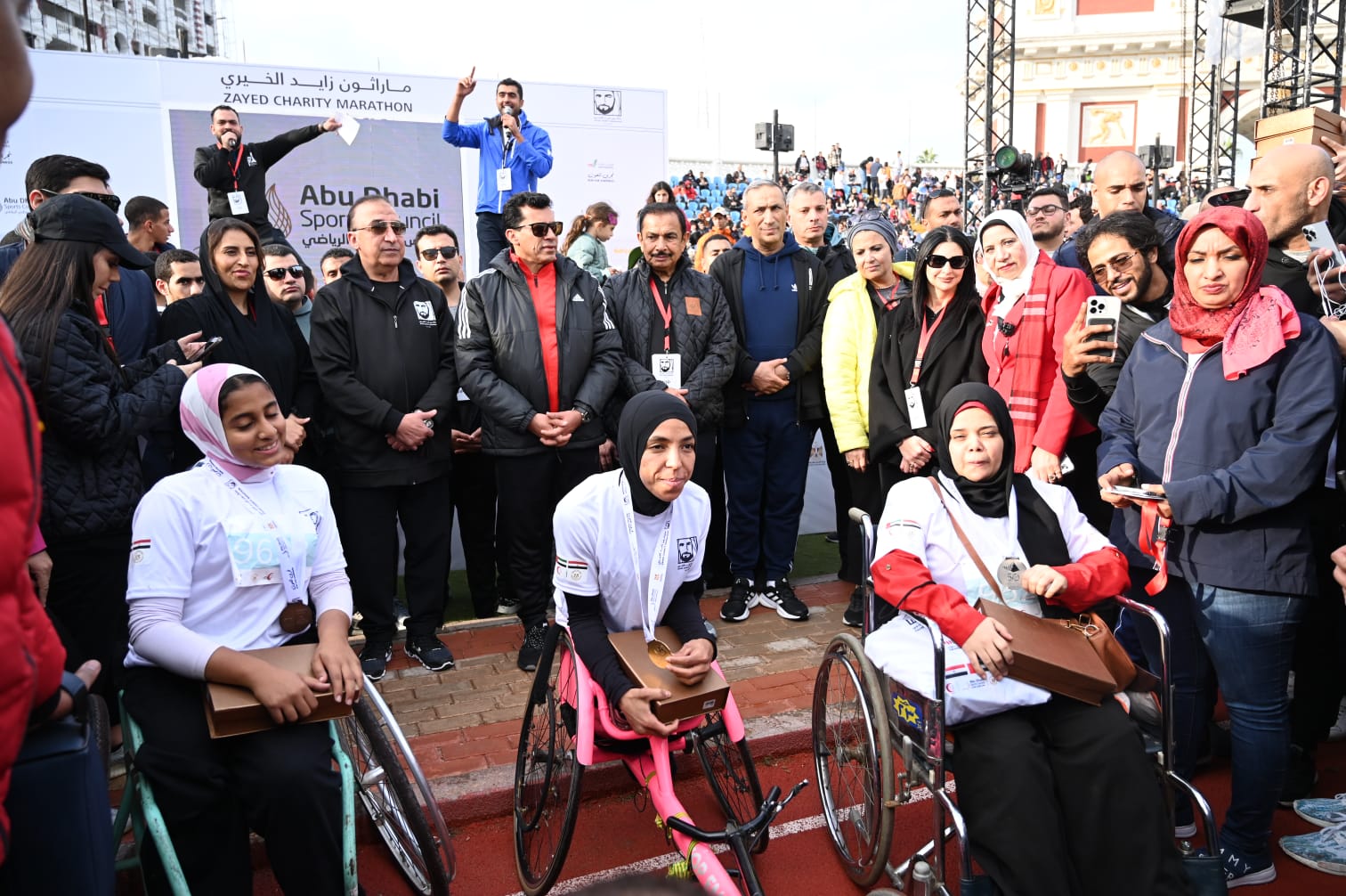 جاءت التتويجات بحضور الفريق الركن محمد هلال الكعبي رئيس اللجنة العليا المنظمة لماراثون زايد الخيري والوفد المرافق له، الفريق أشرف عطوة قائد القوات البحرية، السفيرة مريم خليفة الكعبي سفيرة دولة الإمارات العربية المتحدة لدى مصر، الدكتورة هبة السويدي مؤسس ورئيس مجلس أمناء مؤسسة أهل مصر للتنمية، ولفيف من قيادات وزارة الشباب والرياضة والمحافظة ونجوم الفن والرياضة والإعلام ومشاركة مختلف الجهات المعنية والهلال الأحمر الإماراتي والمصري ورعاة الحدث وشركة كايرو رانرز الشركة المنظمة للحدث.