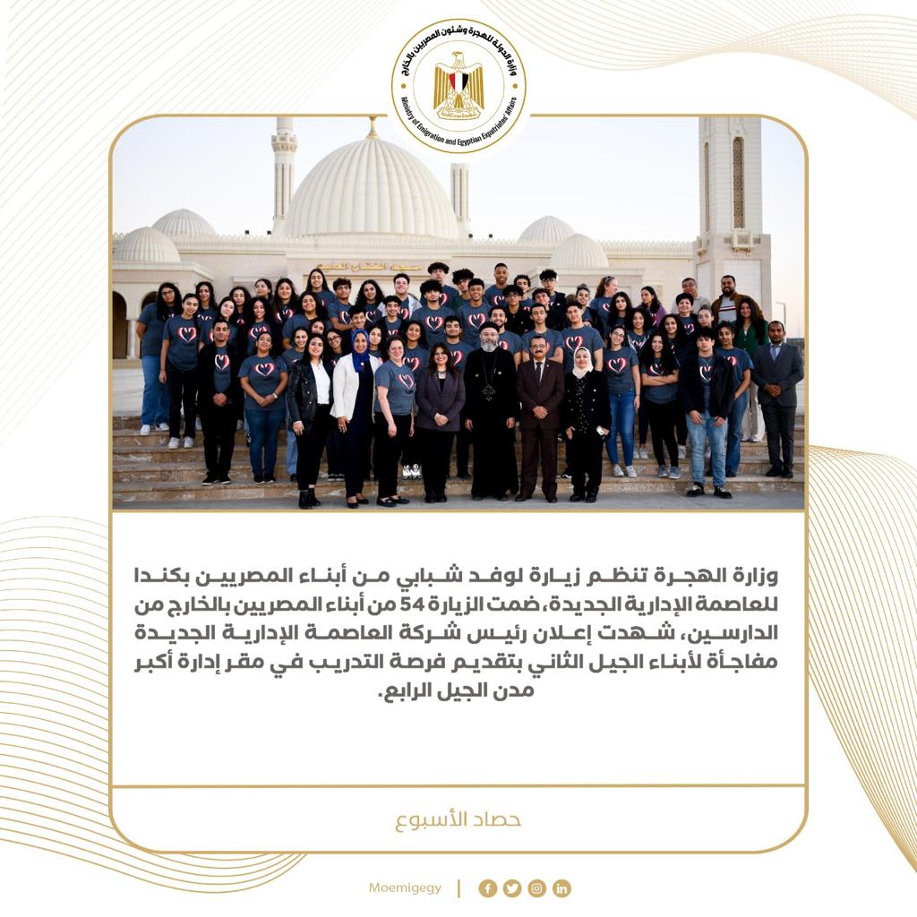 نظمت وزارة الهجرة زيارة لوفد شبابي من أبناء المصريين بكندا للعاصمة الإدارية الجديدة، ضمت الزيارة 54 من أبناء المصريين بالخارج من الدارسين، شهدت إعلان رئيس شركة العاصمة الإدارية الجديدة مفاجأة لأبناء الجيل الثاني بتقديم فرصة التدريب في مقر إدارة أكبر مدن الجيل الرابع.