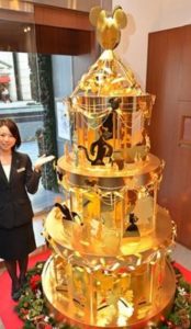 وعرضت شركة يابانية عام 2012 شجرة كريسماس مطلية بالذهب والتي بلغ ارتفاعها 2.4 متر ووزنها 88 رطلاً للاحتفال بالذكرى السنوية الـ 110 لوالت ديزني واستغرق تصميمها شهرين ويبلغ سعرها تكلفتها 4.24 مليون دولار وكانت مزينة بشخصيات ديزني مثل سندريلا وميكي ماوس.
