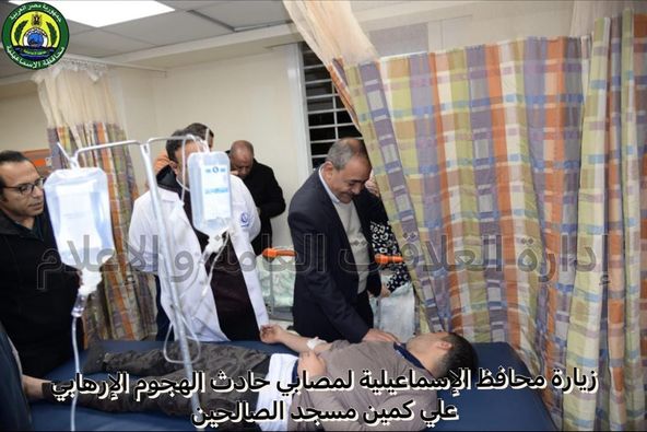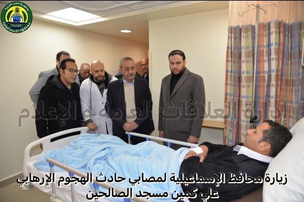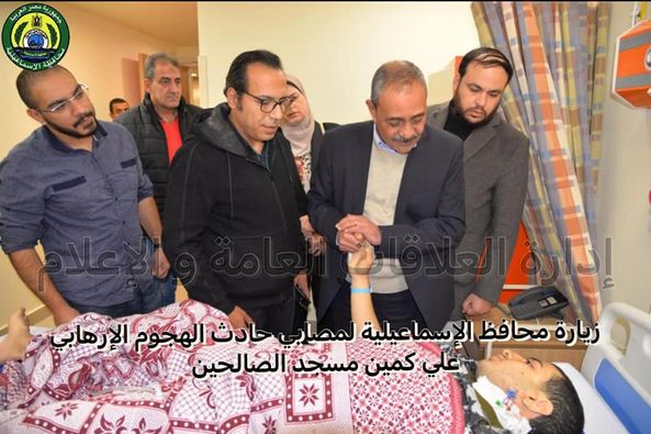 محافظ الإسماعيلية يطمئن على مصابي الهجوم الإرهابي بكمين مسجد الصالحين (صور)