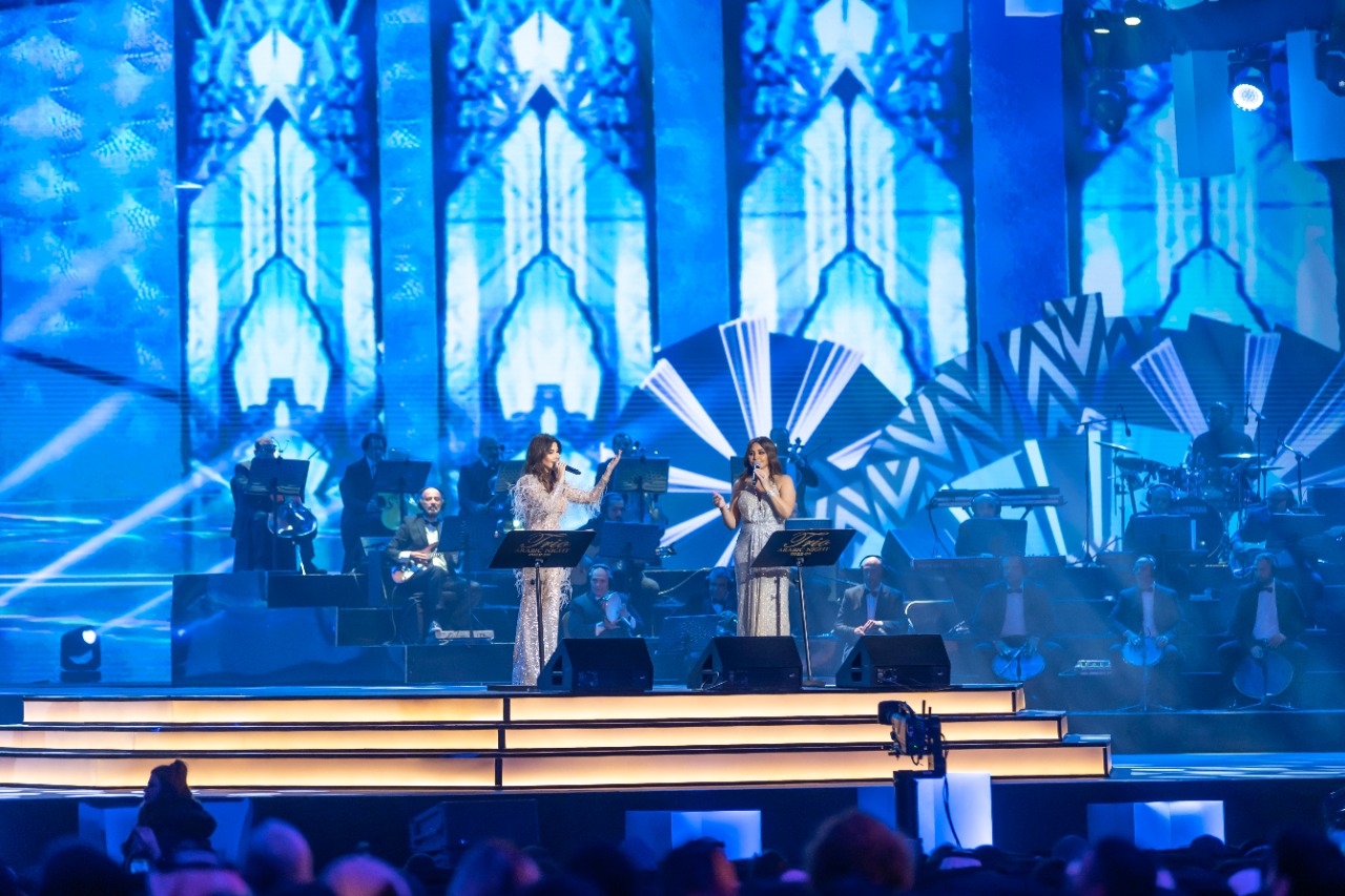 فيما تضمنت قافلة النجوم تتكون من “أنغام، وأصالة نصري، ونجوى كرم، ونوال الزغبي، ولطيفة التونسية، ونانسي عجرم، وأليسا، ووليد توفيق، وعاصي الحلاني، وصابر الرباعي، ووائل كفوري، وبهاء سلطان”، مكملين مفاجئة الحفل بظهور الفنان الكبير جورج وسوف.حيث انطلاق الحدث الفني الكبير، بتواجد الفنانين لأخذ الصورة التذكارية ولقاءات مع الإعلامين برفقة الأستاذ سالم الهندي الرئيس التنفيذي لروتانا.