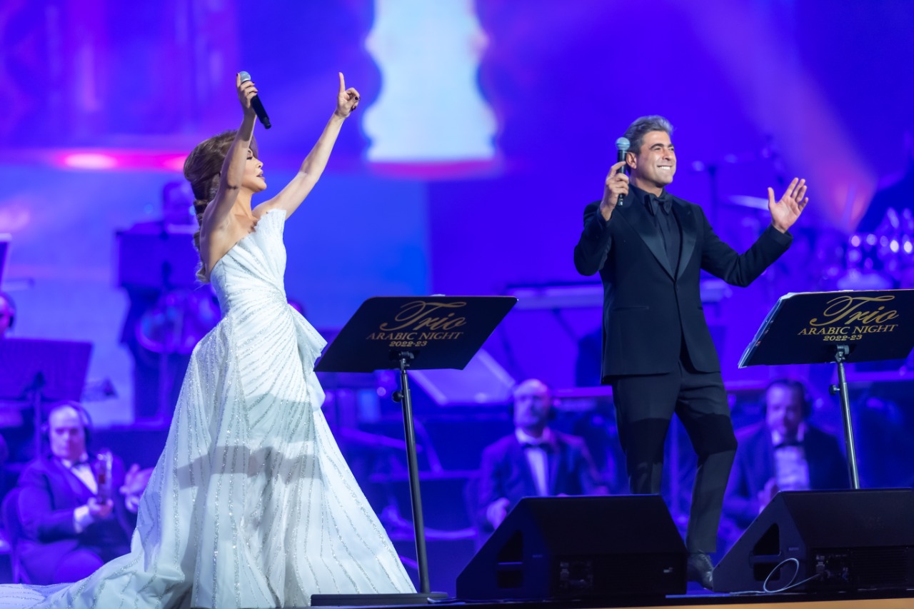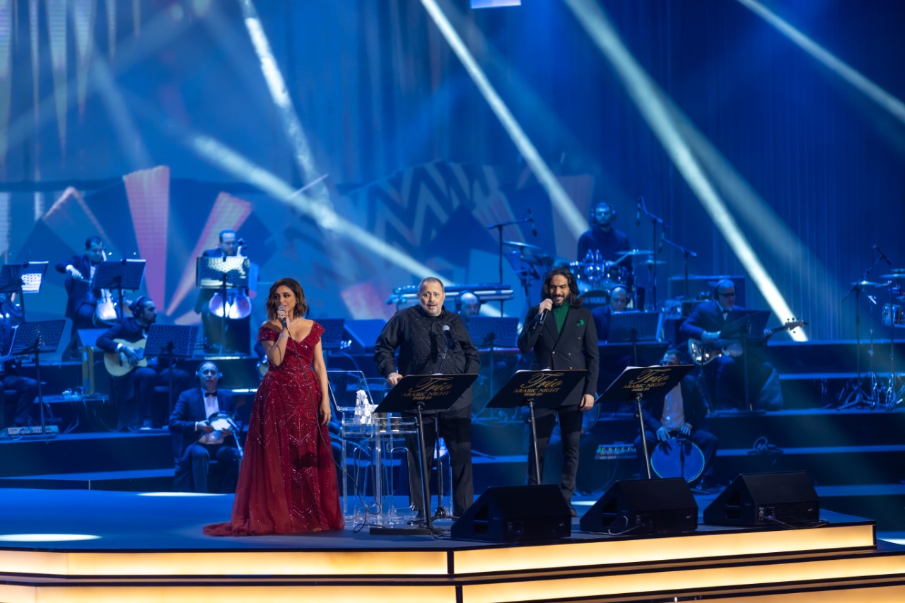 برعاية الهيئة العامة للترفيه وفى ليلة فنية خالدة ضمن ليالي موسم الرياض في نسخته الثالثة تحت عنوان “تريو نايت عربي” من تنظيم واشراف “روتانا”، وذلك احتفاء بالعام الجديد “2023” بمشاركة “13” فنانا وفنانة من ألمع نجوم الوطن العربي، مقدمين “24” أغنية على مسرح “محمد عبده أرينا” في منطقة “بوليفارد رياض سيتي”، ضمن فعاليات “موسم الرياض 2022”. وكانت مداخلة معالي المستشار أ. تركي بن عبدالمحسن آل الشيخ الرئيس العام للهيئة العامة للترفيه، والتي: “رحب فيها بضيوف المملكة العربية السعودية من الفنانين والزائرين الكرام، ومهنئا الجميع بالعام الجديد 2023، آملا أن يكون عام خير على الجميع”.