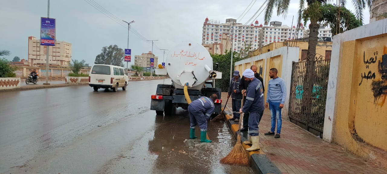 كما أشرف وائل فرج رئيس مدينة البرلس على أعمال رفع تراكمات مياه الأمطار في الأماكن التي تعرضت لتجمعات المياه، وتسليك وتطهير صفايات الأمطار وغرف الصرف الصحي وضخ المياه، مناشداً المواطنين بعدم الاقتراب من أعمدة الانارة حرصاً على صحتهم وسلامتهم