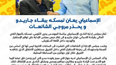 —————————— بوابة “مصر الآن” | متابعات أعلن مجلس إدارة النادي الإسماعيلي، برئاسة المهندس يحيي الكومي، تمسكه بالجهاز الفني الحالي بقيادة…