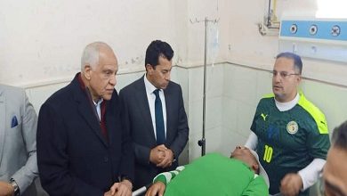 محافظ الجيزة يزور المصابين في حادث انهيار مدرج كأس سوبر السلة