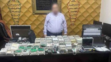 حوادث وقضايا تفاصيل القبض على كهربائي تلاعب في عدادات الكهرباء بالدقهليةنجحت الأجهزة الأمنية بوزارة الداخلية في ضبط كهربائى بالدقهلية لقيامه بالتلاعب فى عدادات الكهرباء من خلال إضافة أرصدة وهمية نظير… أكمل القراءة »