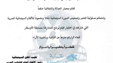 —————————— بوابة “مصر الآن” | متابعات تقدمت نقابة المهن السينمائية برئاسة النقيب مسعد فودة، بالشكر إلى أعضاء اللجنة التى تم…