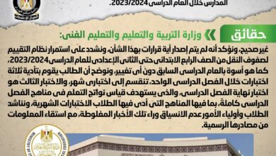 زارة التربية والتعليم والتعليم الفني تنفي إصدار قرار بإلغاء نظام الاختبارات الشهرية لطلاب مرحلة النقل في المدارس