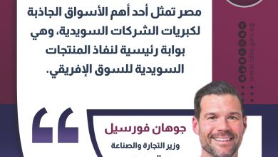 فورسيل: مصر من الأسواق الجاذبة لكبريات الشركات السويدية