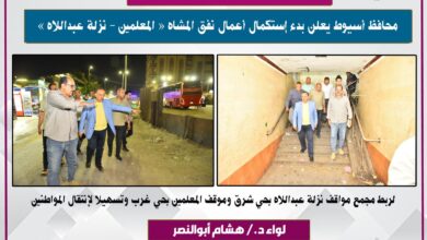 أعلن اللواء دكتور هشام أبوالنصر محافظ أسيوط، بدء الأعمال في استكمال نفق المشاه الذي يربط بين مجمع مواقف نزلة عبداللاه…