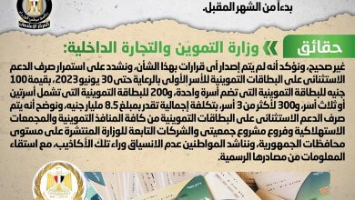 تداولت بعض المواقع الإلكترونية وصفحات التواصل الاجتماعي أنباء بشأن وقف صرف الدعم الاستثنائي على البطاقات التموينية بدءاً من الشهر المقبل…