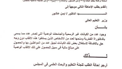 النائب عماد خليل يتقدم بطلب إحاطة بشأن كيانات وهمية تمنح الدكتوراه الفخرية