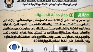 حذر المركز الإعلامي لمجلس الوزراء من صفحات إلكترونية على مواقع التواصل الاجتماعي تزعم تبعيتها لإحدى شركات بيع الأجهزة المنزلية بالتقسيط،…