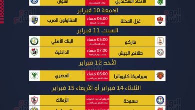 —————————— بوابة “مصر الآن” | متابعات أعلنت رابطة أندية الدوري المحترفة عن جدول مباريات الدور الثاني للدوري الممتاز حتى الأسبوع…