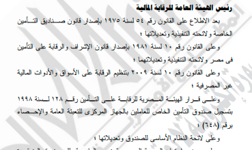 بوابة “مصر الآن”| أصدر الدكتور محمد فريد رئيس الهيئة العامة للرقابة المالية، قرارًا رقم 1497 لسنة 2022، بشأن اعتماد تعديل…