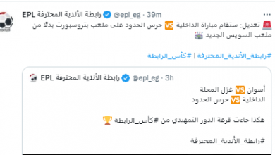 رابطة الأندية تقوم بتعديل ملعب مباراة الداخلية و حرس الحدود بكأس الرابطة