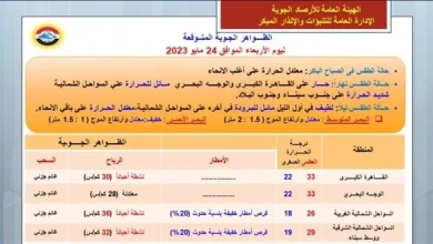 توقع خبراء هيئة الأرصاد الجوية أن يسود، اليوم الجمعة 7 يوليو 2023، طقس حار رطب نهارا على القاهرة الكبرى والوجه…