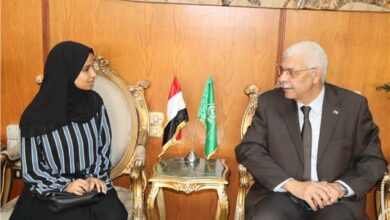 رئيس جامعة المنوفية يعزي طالبة فلسطينية فقدت عائلتها في العدوان الإسرائيلي بغزة