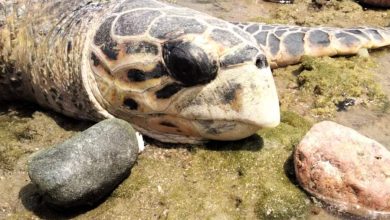 نفوق سلحفاة بحرية مهددة بالانقراض علي شاطئ دهب