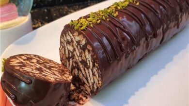 طريقة عمل كيك البسكويت والشوكولاتة الباردة