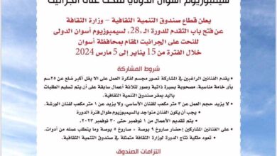 يعلن قطاع صندوق التنمية الثقافية، برئاسة الدكتور وليد قانوش ، عن فتح باب التقدم للدورة الــ 28 من سيمبوزيوم أسوان…