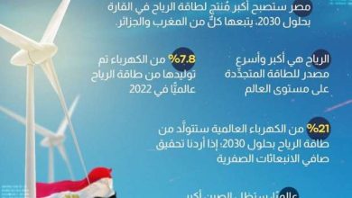 أعلن مركز المعلومات ودعم اتخاذ القرار في مجلس الوزراء، أنّ مصر ستصبح أكبر منتج لطاقة الرياح في القارة بحلول 2030،…