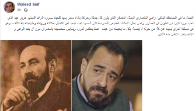 وليد سيف يشيد بـ رامي الطمباري فى الضاحك الباكى:امتداد طبيعى لمدرسة عزيز عيد