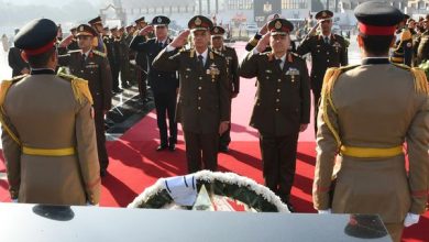وزير الدفاع يضع إكليل الزهور على النصب التذكارى لشهداء القوات المسلحة