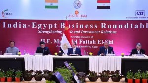 7. President Sisi attended a business event where he delivered a keynote address and invited the Indian business community to explore new and emerging business opportunities in Egypt. He sought Indian investments in Egypt, particularly in sectors such as infrastructure, petrochemicals, energy, agriculture, healthcare, education, skills development and IT.