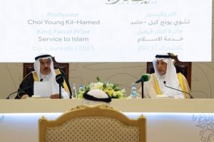 – His translation of a large number of Islamic books, noted for their quality, accuracy, clarity, soundness of language and sobriety of style, which contributed to the dissemination of knowledge about the critical aspects of Islamic culture amid Far Eastern societies, specifically among Korean-speaking peoples. Notable among these books is the translation of the meanings of the Noble Qur’an into the Korean language, which was commissioned by the King Fahd Glorious Quran Printing Complex. Some of his other books include “Forty Hadith of an-Nawawi”, “Riyad as-Salihin (The Meadows of the Righteous)”, “ A Short Version of Sahih al-Bukhari”, “The Indexed Dictionary of the Words of the Holy Qur’an”, “Prophet Mohammad”, and several other Arabic language tutorial books for Koreans which are used in a number of Korean universities.