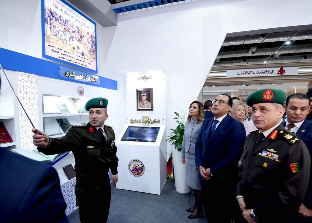 Waziri Mkuu pia alikagua banda la Wizara ya Ulinzi na shughuli zilizoingiliana nalo, na kusikiliza maelezo kutoka kwa wawakilishi wa wizara hiyo kuhusu vita maarufu na ushindi wa kijeshi wa Misri, na haiba ya mrengo huo ni Field Marshal Ahmed Ismail, mmoja wa viongozi wakuu wa Vita tukufu ya Oktoba, na wakati wa uwepo wake Madbouly alikagua machapisho kadhaa yanayohusiana na uwanja wa kijeshi katika matawi mbalimbali ya majeshi, pamoja na jukumu la mifumo ya habari na taasisi za lugha za majeshi katika kuwahudumia raia wa Misri, na Waziri Mkuu alipongeza banda hilo na yaliyomo na kutoa heshima kwa familia za mashahidi na watoto wao.