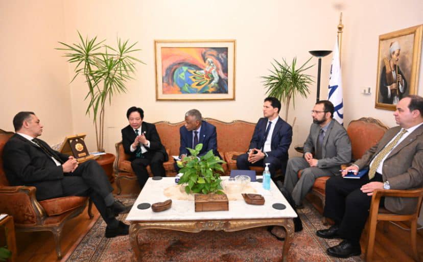 Balozi Ashraf Ibrahim, Katibu Mkuu wa Wakala wa Ushirikiano wa Maendeleo wa Misri, akipokea ujumbe kutoka Shirika la Chakula na Kilimo la Umoja wa Mataifa (FAO) unaoongozwa na Ye Anping, Mkurugenzi wa Idara ya Ushirikiano wa Kusini-Kusini na pande tatu katika Utawala Kuu wa FAO, kwa mahudhurio ya Dk.Nasr El-Din Haj El-Amin, mwakilishi wa Shirika la Chakula na Kilimo la Umoja wa Mataifa (FAO) nchini Misri.