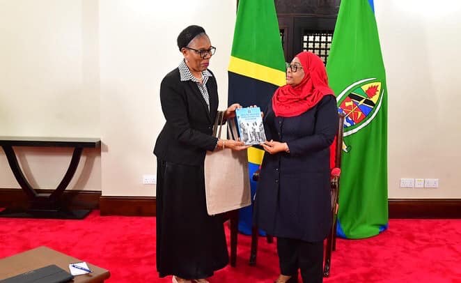 Katibu Mkuu Ofisi ya Makamu wa Rais Bi. Mary Maganga jana 17/08/2023 aliewasilisha taarifa ya shughuli mbalimbali zinazofanywa na OMR kwa Mh Rais wa Jamhuri ya Muungano wa Tanzania Dkt. Samia Suluhu katika Ofisi za Ikulu Chamwino.