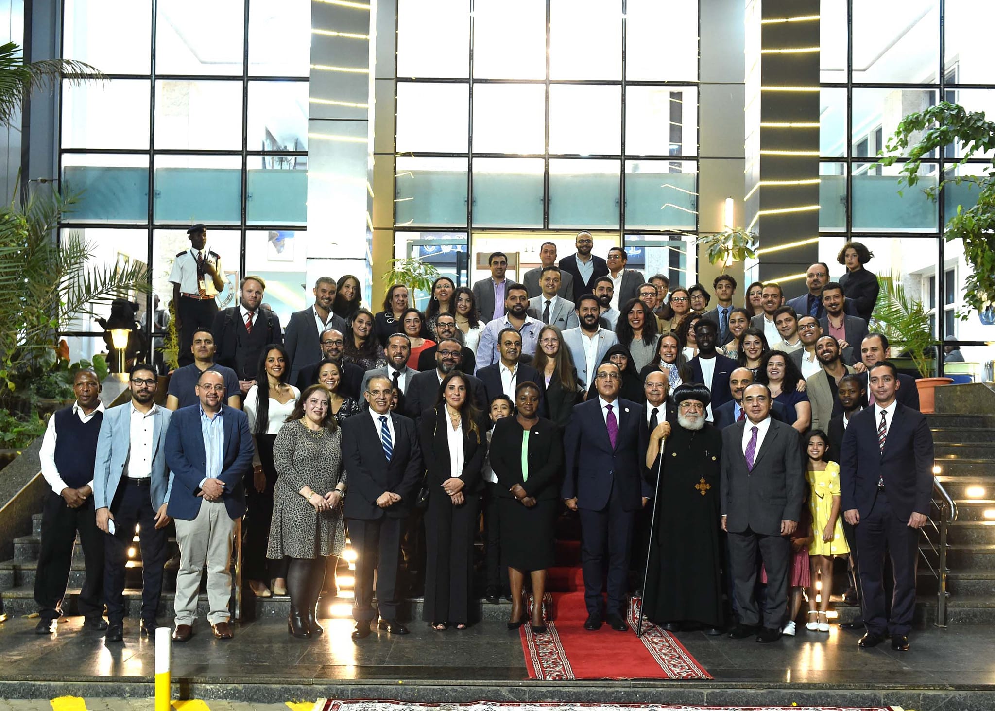 Dkt. Mostafa Madbouly aliambatana na ziara yake ya hospitali na Balozi Wael Nasreddine, Askofu Boulos, Pan-African Patriarch, na maafisa wa hospitali.